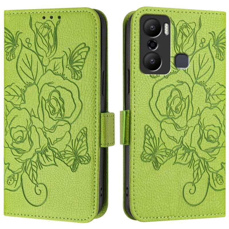 Για Infinix Hot 20 Play ανάγλυφο Rose RFID Anti-theft δερμάτινη θήκη τηλεφώνου (Πράσινο)