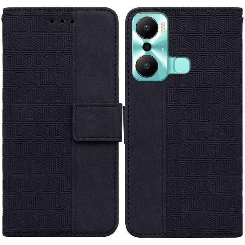 Για το Infinix Hot 20 Play Γεωμετρική ανάγλυφη θήκη τηλεφώνου με δερμάτινη επένδυση (μαύρο)