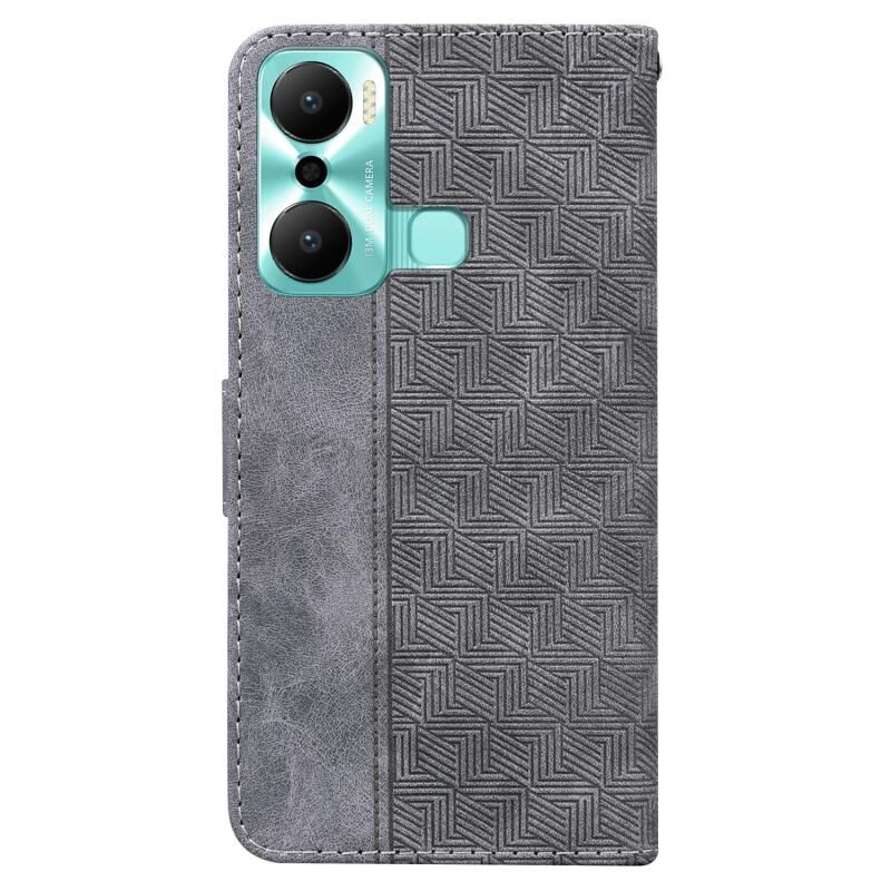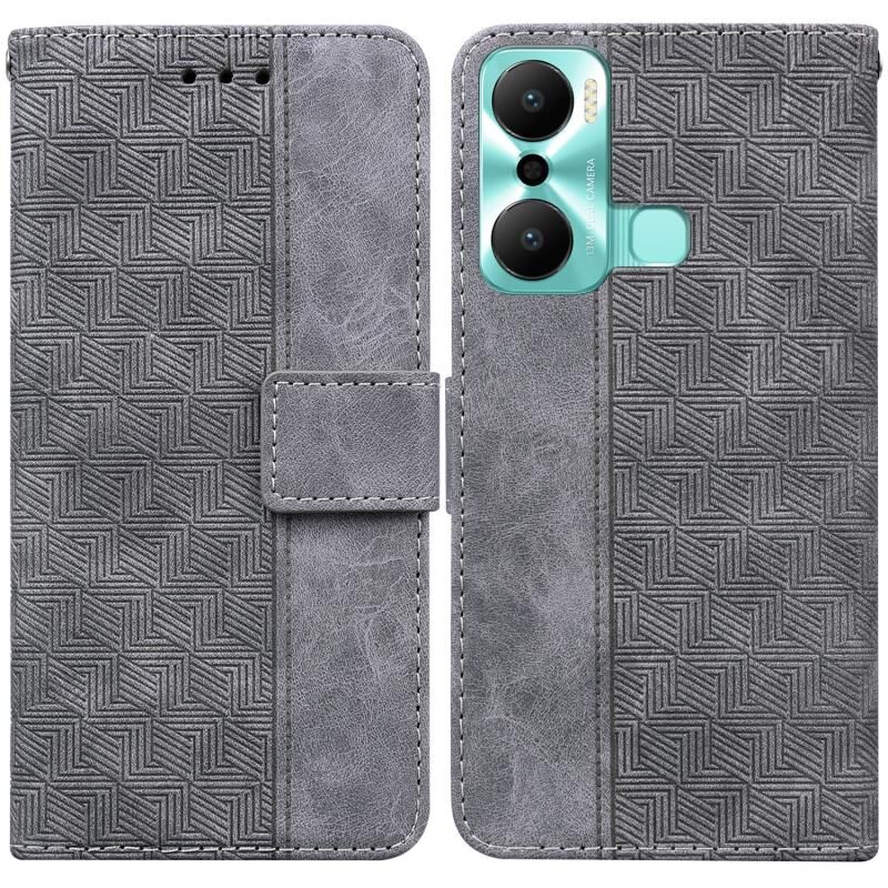Για Infinix Hot 20 Play Γεωμετρική ανάγλυφη θήκη τηλεφώνου με δερμάτινη επένδυση (γκρι)