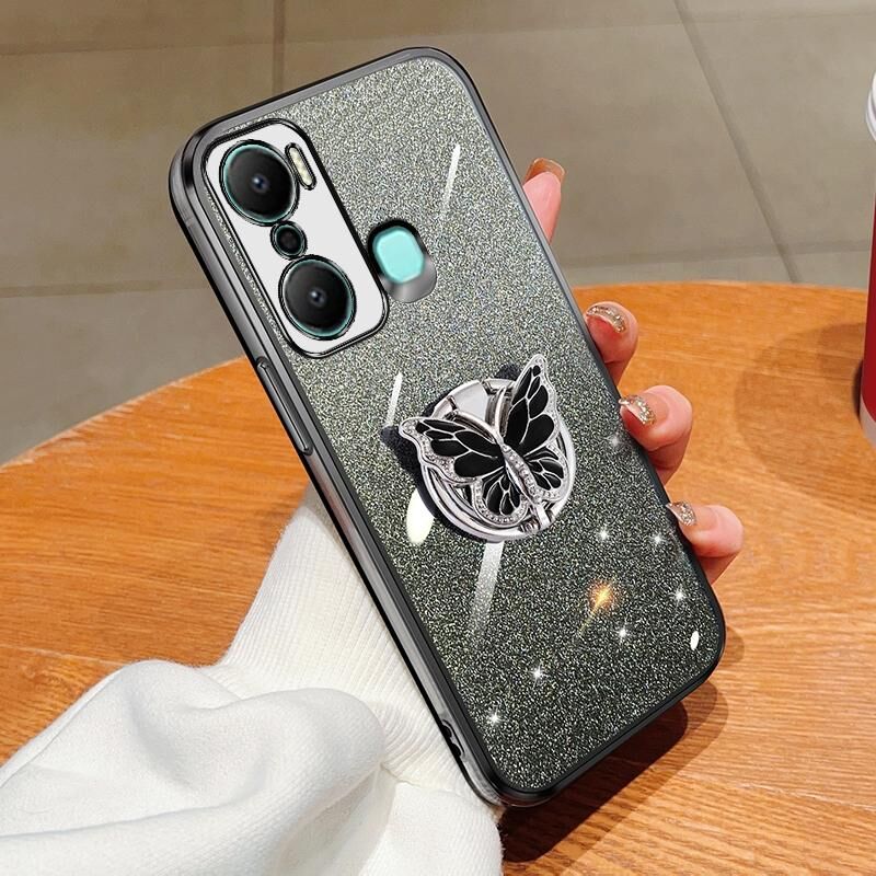 Για το Infinix Hot 20 Play Plated Gradient Glitter πεταλούδα κάτοχος TPU τηλέφωνο υπόθεση (μαύρο)