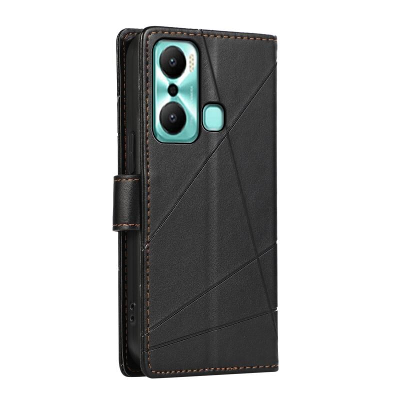 For Infinix Hot 20 Play PU Genuine Leather Texture Embossed Line Phone Case(Black)