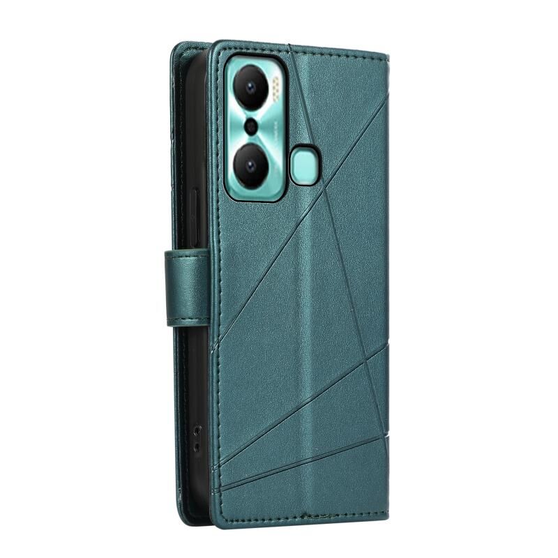 For Infinix Hot 20 Play PU Genuine Leather Texture Embossed Line Phone Case(Green)