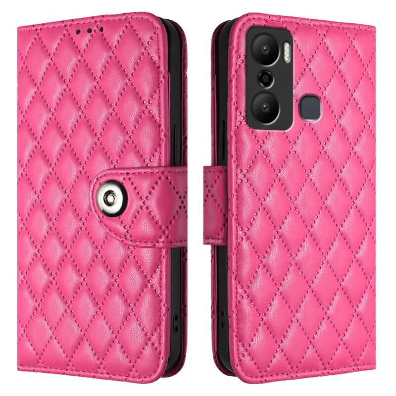 Για το Infinix Hot 20 Play Rhombic Texture Flip δερμάτινη θήκη τηλεφώνου με κορδόνι (Rose Red)