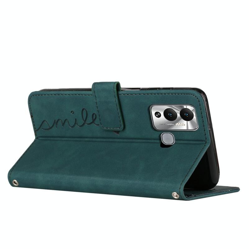 Θήκη τηλεφώνου από δέρμα με σχέδιο καρδιάς και αίσθηση δέρματος για Infinix Hot 20 Play με κορδόνι (Πράσινο)