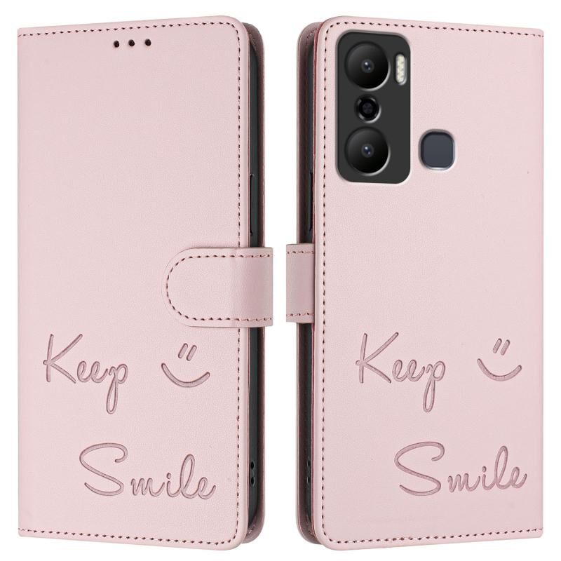 Για Infinix Hot 20 Play Χαμόγελο ανάγλυφο RFID δερμάτινη θήκη τηλεφώνου (ροζ)
