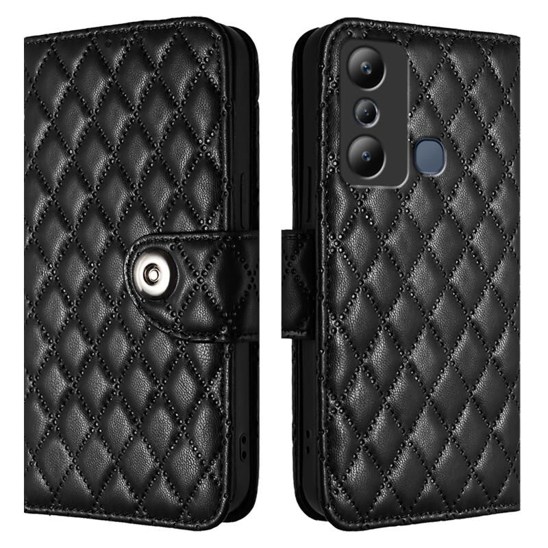 Για το Infinix Hot 20i X665E Rhombic Texture Flip δερμάτινη θήκη τηλεφώνου με κορδόνι (μαύρο)