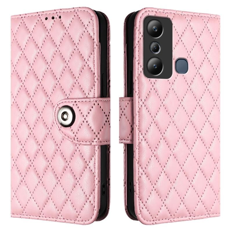 Για το Infinix Hot 20i X665E Rhombic Texture Flip δερμάτινη θήκη τηλεφώνου με κορδόνι (ροζ)
