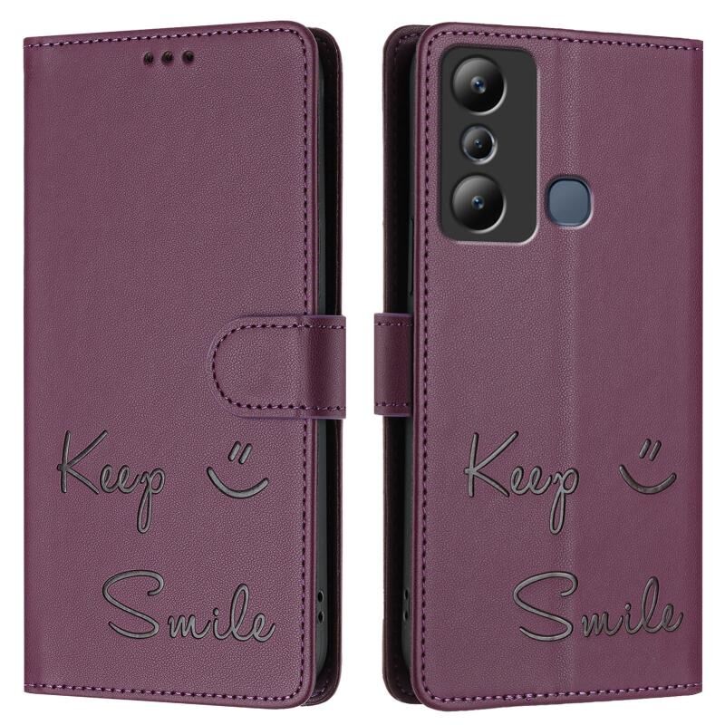 Για Infinix Hot 20i X665E Χαμόγελο ανάγλυφο RFID δερμάτινη θήκη τηλεφώνου (Violet)