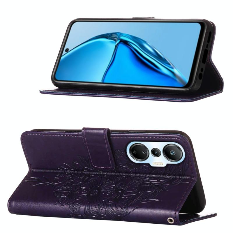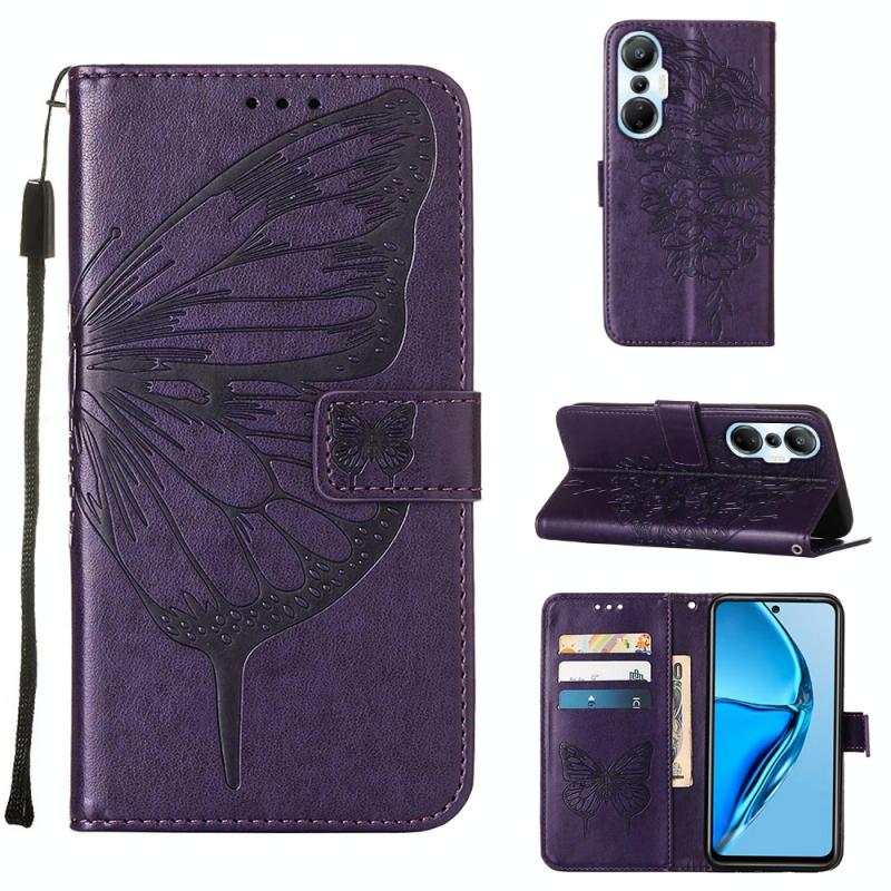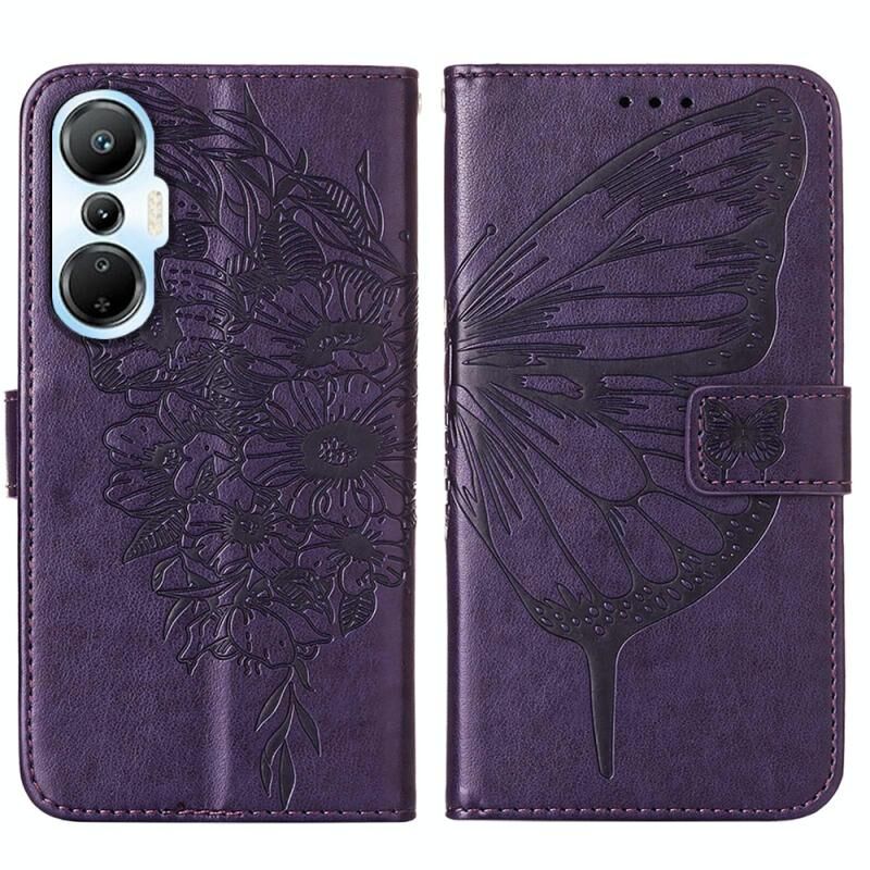 Θήκη τηλεφώνου από δέρμα με ανάγλυφο σχέδιο πεταλούδας, τύπου flip, για Infinix Hot 20S / 20 Pro X6827 (Μωβ)