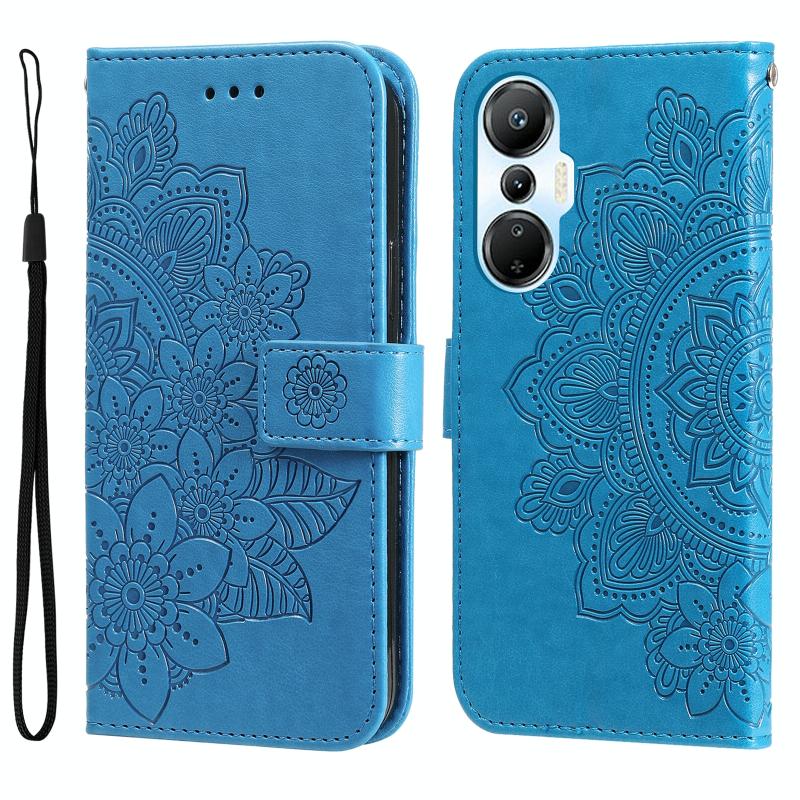 Θήκη τηλεφώνου από δέρμα με ανάγλυφα 7 πέταλα λουλουδιών για Infinix Hot 20s (Χρυσορόδινο)