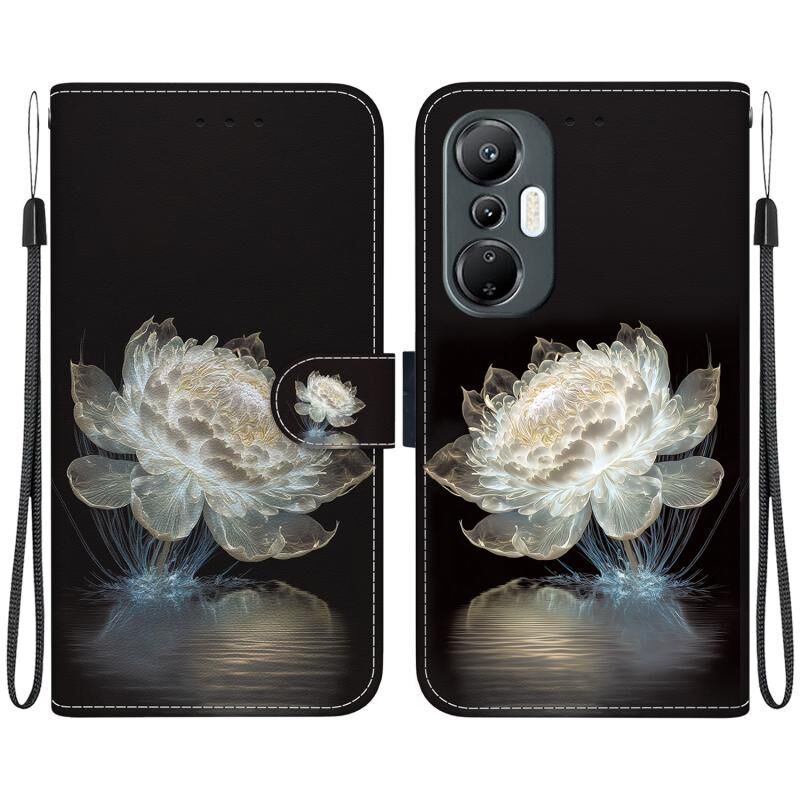Θήκη τηλεφώνου από δέρμα με πολύχρωμη σχεδίαση κρυστάλλινης υφής για Infinix Hot 20S (Κρυσταλλική Παιώνια)