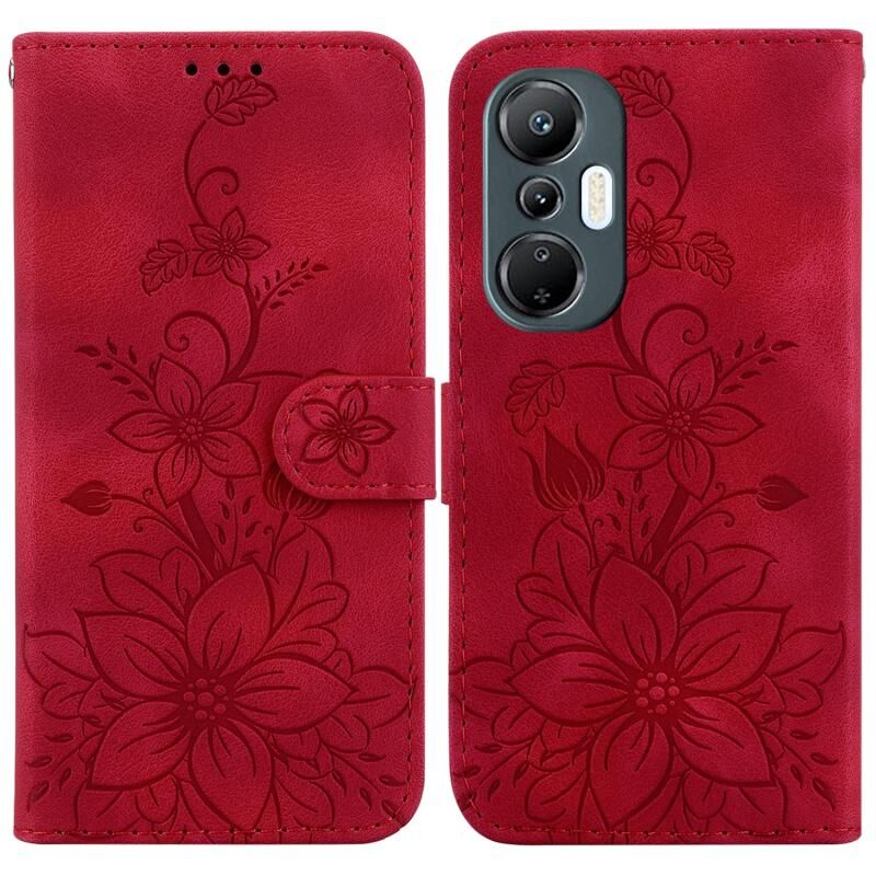 For Infinix Hot 20S Lily Embossed Leather Phone Case(Red)