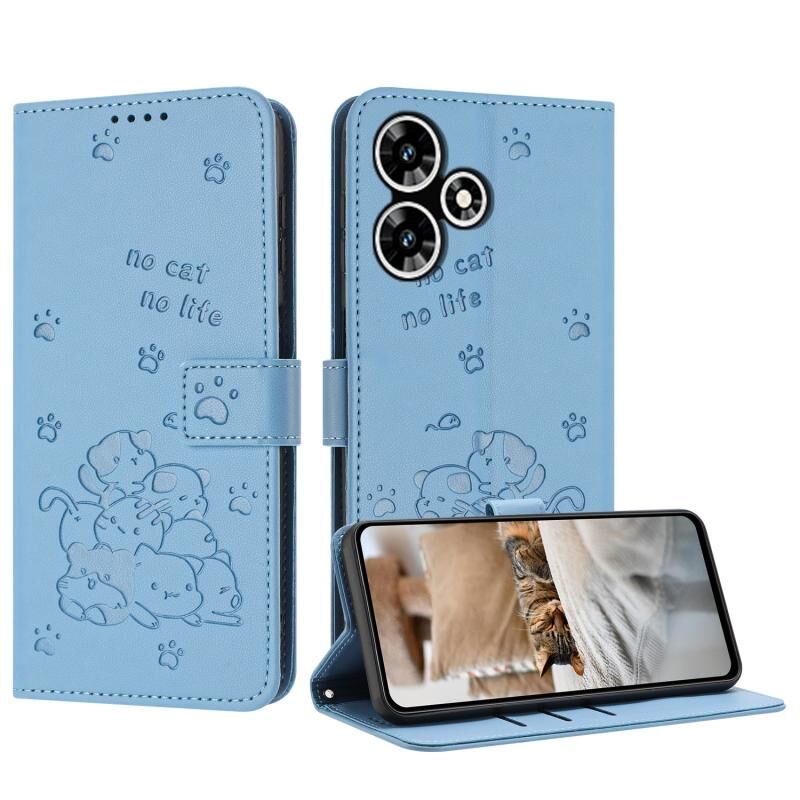 Θήκη δερμάτινη για Infinix Hot 30 4G με ανάγλυφο σχέδιο γατάκι και κορδόνι (Μωβ)