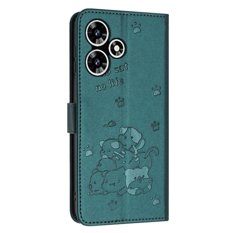 Θήκη δερμάτινη για Infinix Hot 30 4G με ανάγλυφο σχέδιο γατάκι και κορδόνι (Μωβ)