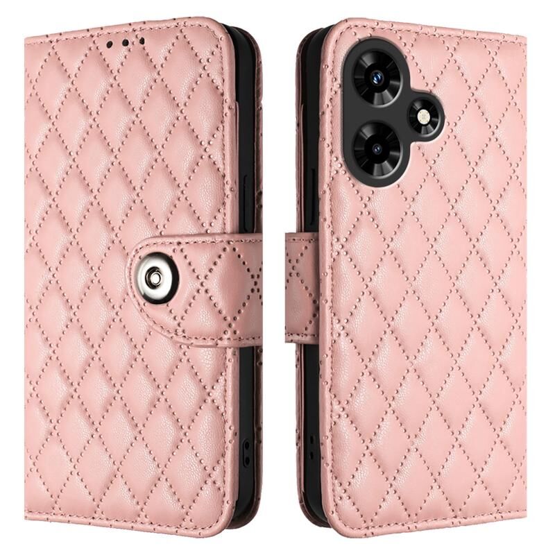 Για Infinix Hot 30 4G Rhombic υφή Flip δερμάτινη θήκη τηλεφώνου με κορδόνι (Coral Pink)