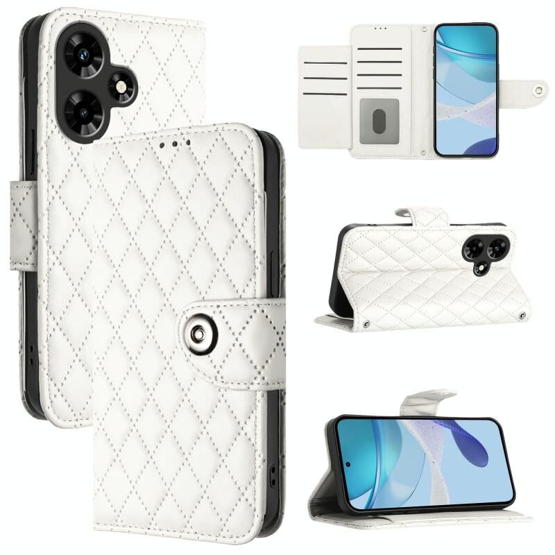 Για Infinix Hot 30 4G Rhombic Texture Flip δερμάτινη θήκη τηλεφώνου με κορδόνι (λευκό)