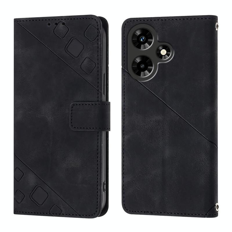 Για το Infinix Hot 30 4G Skin Feel ανάγλυφη δερμάτινη θήκη τηλεφώνου (μαύρο)