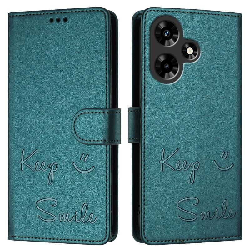Για Infinix Hot 30 4G Χαμόγελο ανάγλυφο RFID δερμάτινη θήκη τηλεφώνου (Πράσινο παγώνι)