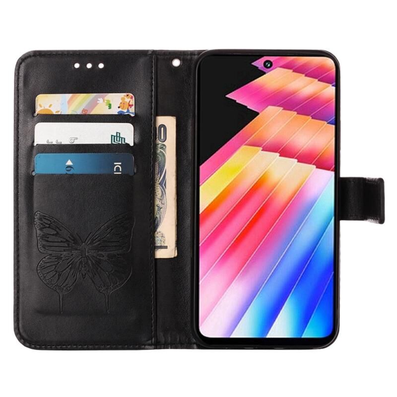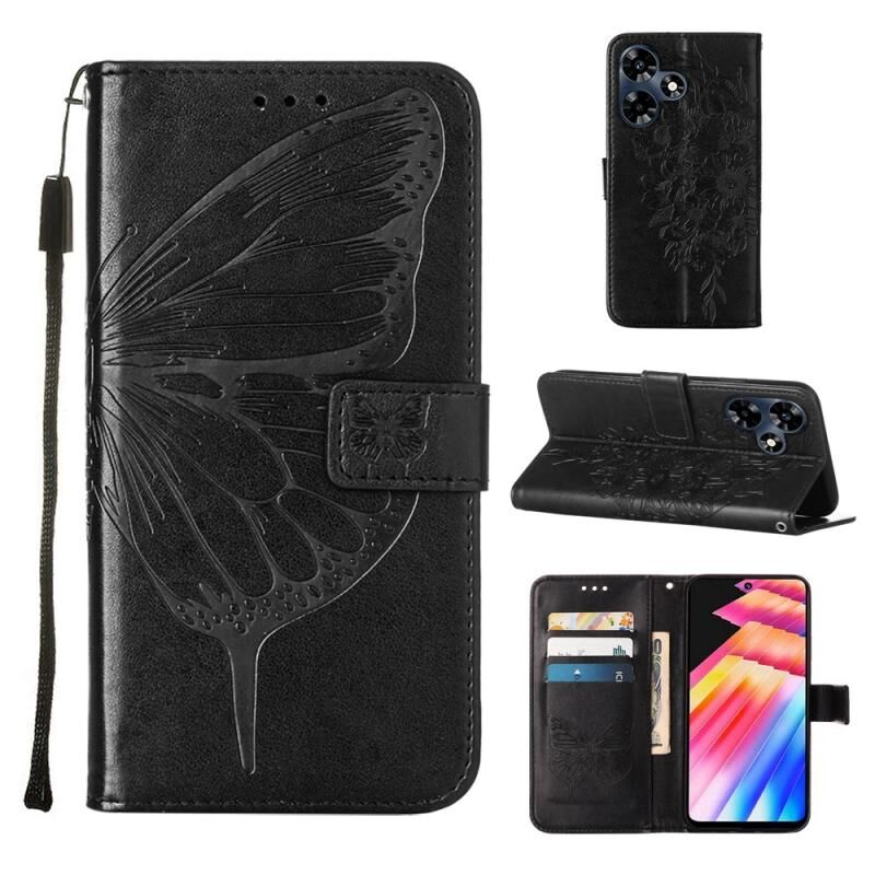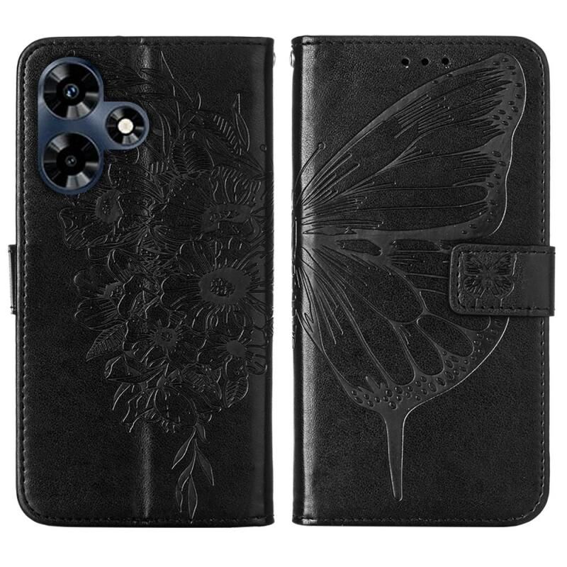 Θήκη τηλεφώνου από δέρμα με ανάγλυφο σχέδιο πεταλούδας για Infinix Hot 30 4G / X6831 (Μαύρο)