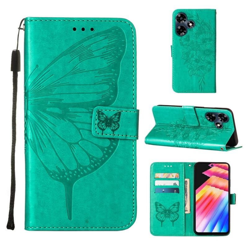 Θήκη τηλεφώνου από δέρμα με ανάγλυφο σχέδιο πεταλούδας για Infinix Hot 30 4G / X6831 (Σκούρο Μωβ)