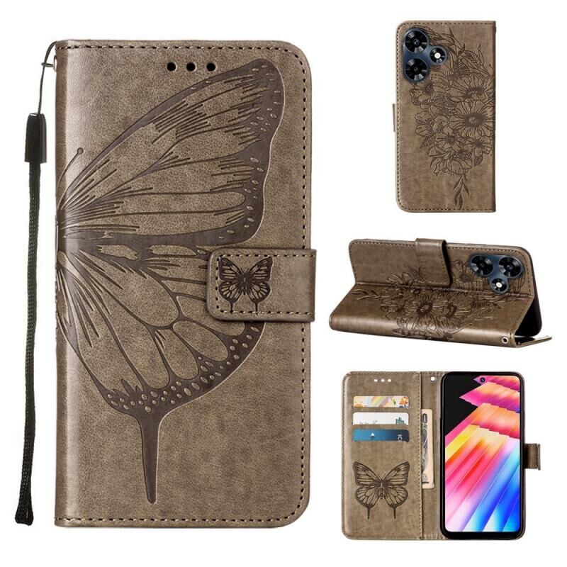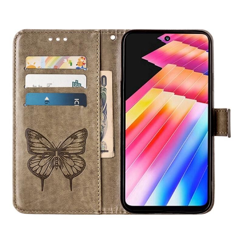 Θήκη τηλεφώνου από δέρμα με ανάγλυφο σχέδιο πεταλούδας για Infinix Hot 30 4G / X6831 (Σκούρο Μωβ)