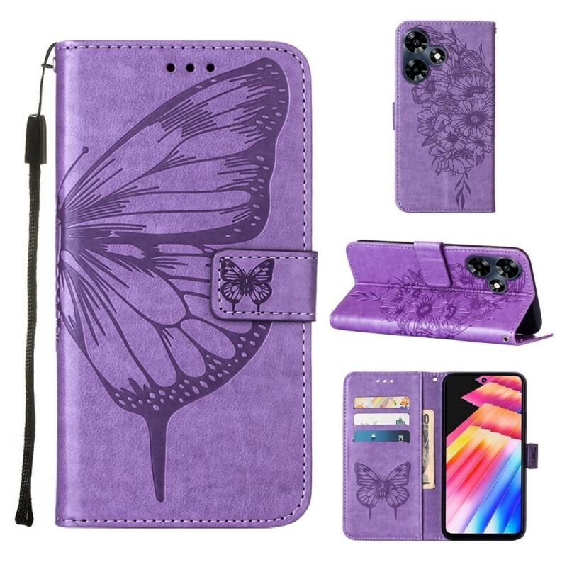 Θήκη τηλεφώνου από δέρμα με ανάγλυφο σχέδιο πεταλούδας για Infinix Hot 30 4G / X6831 (Σκούρο Μωβ)