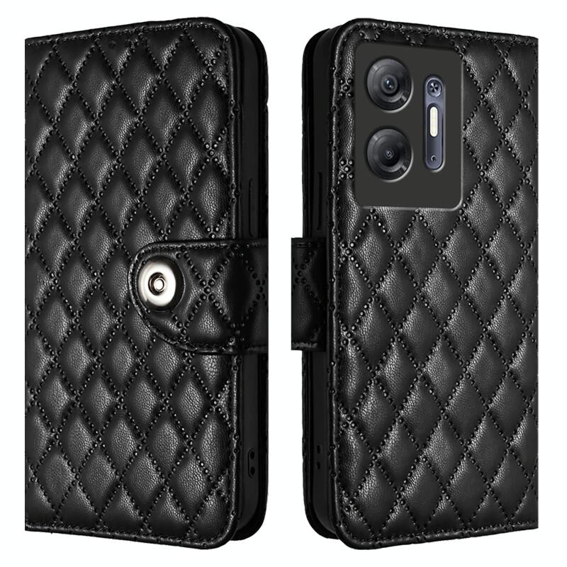 Για το Infinix Hot 30 5G Rhombic Texture Flip δερμάτινη θήκη τηλεφώνου με κορδόνι (μαύρο)