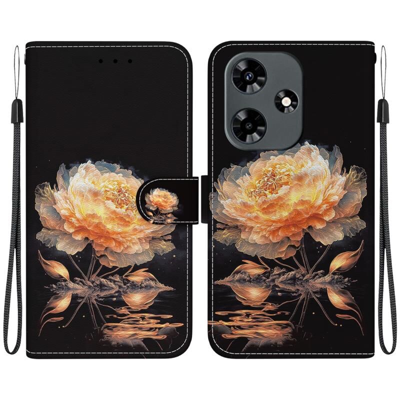 Θήκη τηλεφώνου από δέρμα με πολύχρωμη σχεδίαση και κρυσταλλική υφή για Infinix Hot 30 (Μωβ Παιώνια)