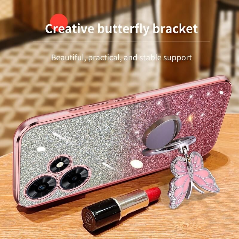 Για Infinix Hot 30 επιμεταλλωμένο διαβάθμιση Glitter πεταλούδα κάτοχος TPU τηλέφωνο υπόθεση (ροζ)