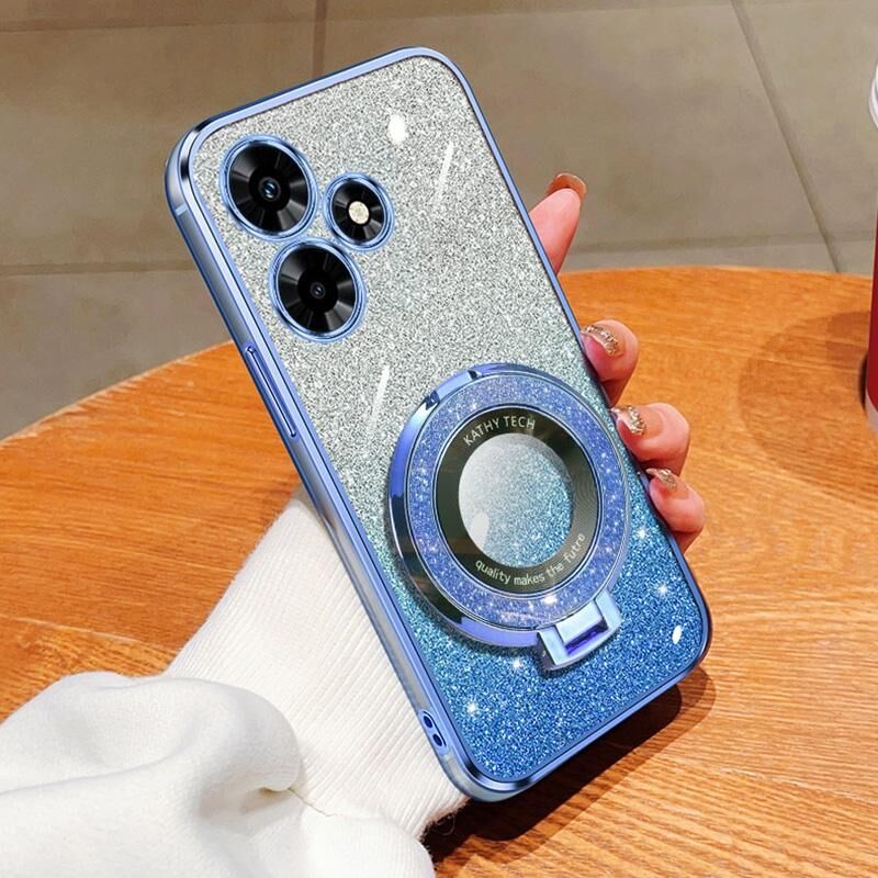 Για Infinix Hot 30 επιμεταλλωμένο διαβάθμιση Glitter στρογγυλή κάτοχος TPU τηλέφωνο υπόθεση (Sierra Blue)