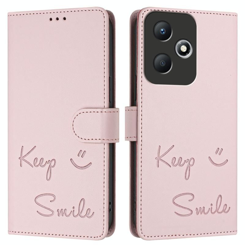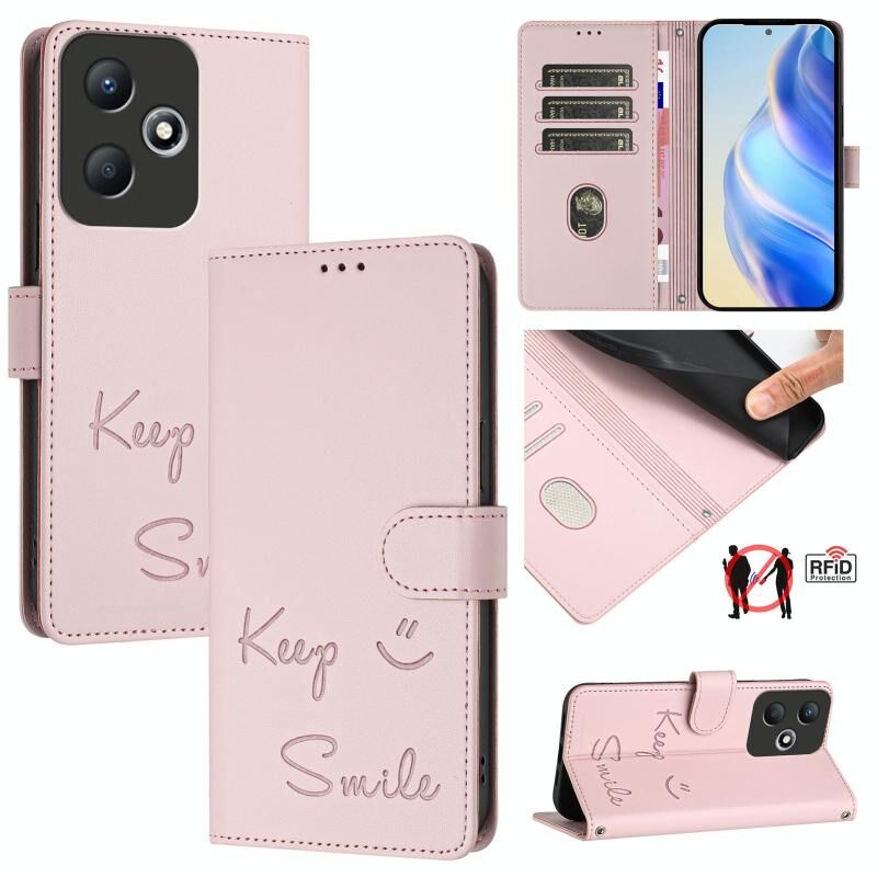 Για Infinix Hot 30 Play / 30 Play NFC Smile ανάγλυφο RFID δερμάτινη θήκη τηλεφώνου (ροζ)