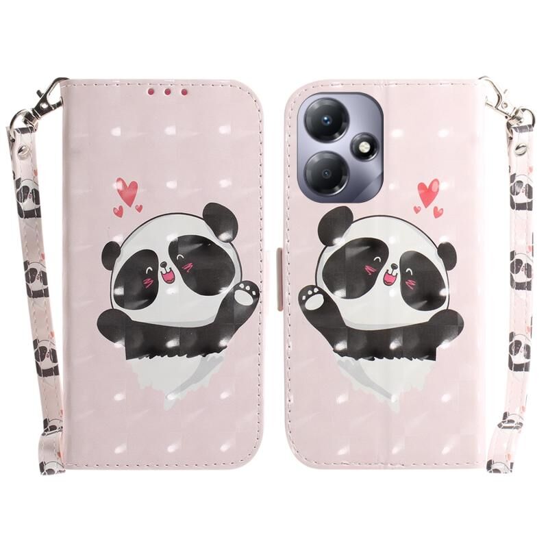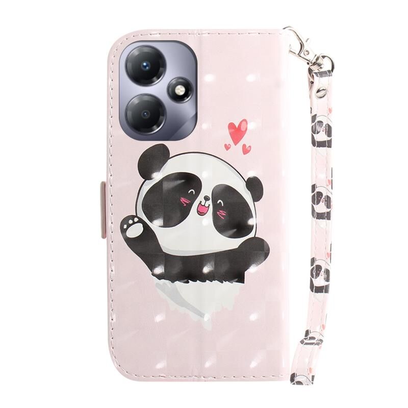 Θήκη τηλεφώνου δερμάτινη, οριζόντια, αναδιπλούμενη, με τρισδιάστατο χρωματιστό σχέδιο για Infinix Hot 30 Play (Heart Panda)