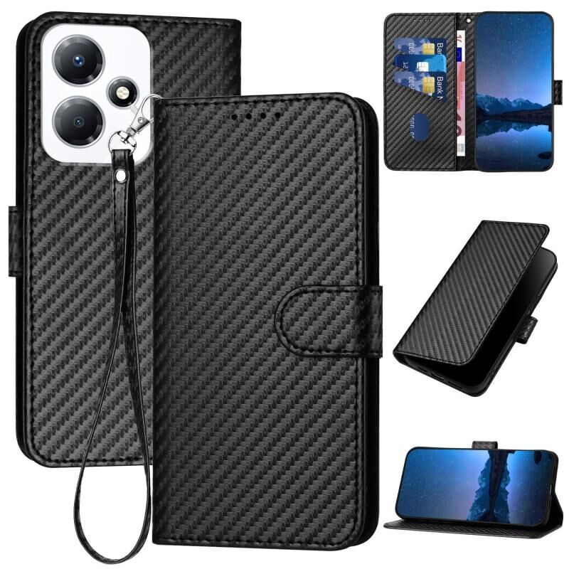 Για Infinix Hot 30 Play / Hot 30 Play NFC YX0070 Carbon Fiber Πόρπη δερμάτινη θήκη τηλεφώνου με κορδόνι (μαύρο)