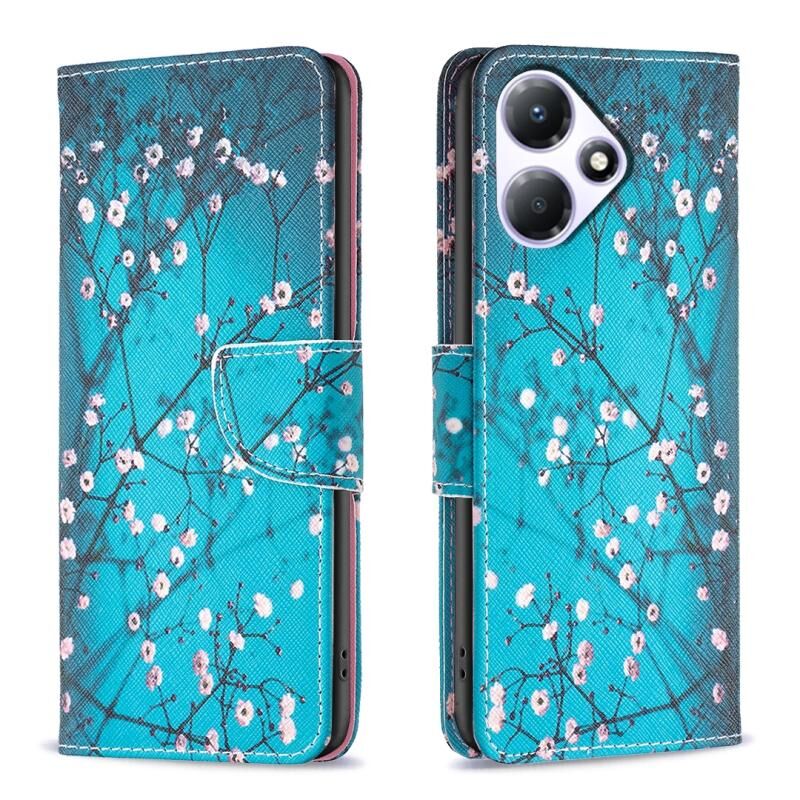 Θήκη τηλεφώνου δερμάτινη με έγχρωμο σχέδιο για Infinix Hot 30 Play NFC (Λουλούδι Δαμασκηνιάς)