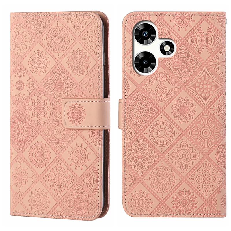 For Infinix Hot 30 Play NFC Ethnic Style Embossed Pattern Leather Phone Case(Pink)