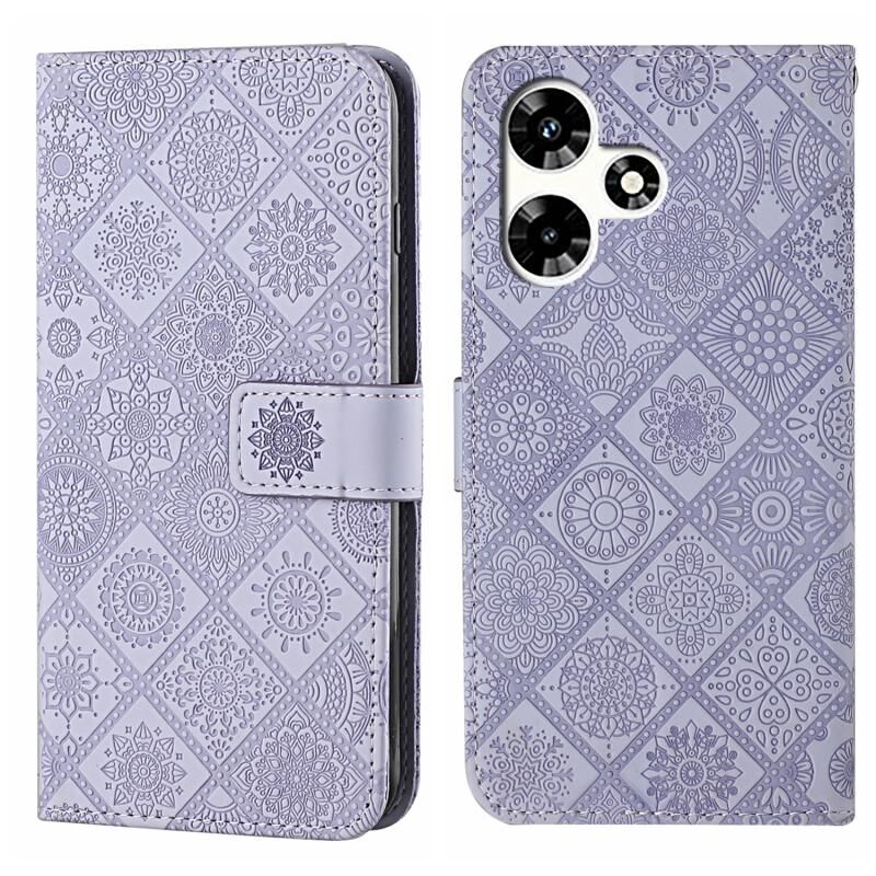 For Infinix Hot 30 Play NFC Ethnic Style Embossed Pattern Leather Phone Case(Purple)