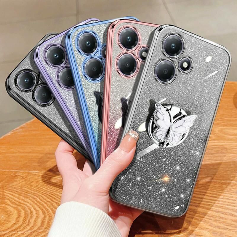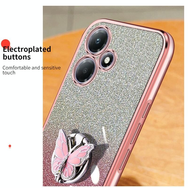 Για Infinix Hot 30 Play Plated βαθμιδωτή Glitter πεταλούδα κάτοχος TPU τηλέφωνο υπόθεση (Sierra Blue)