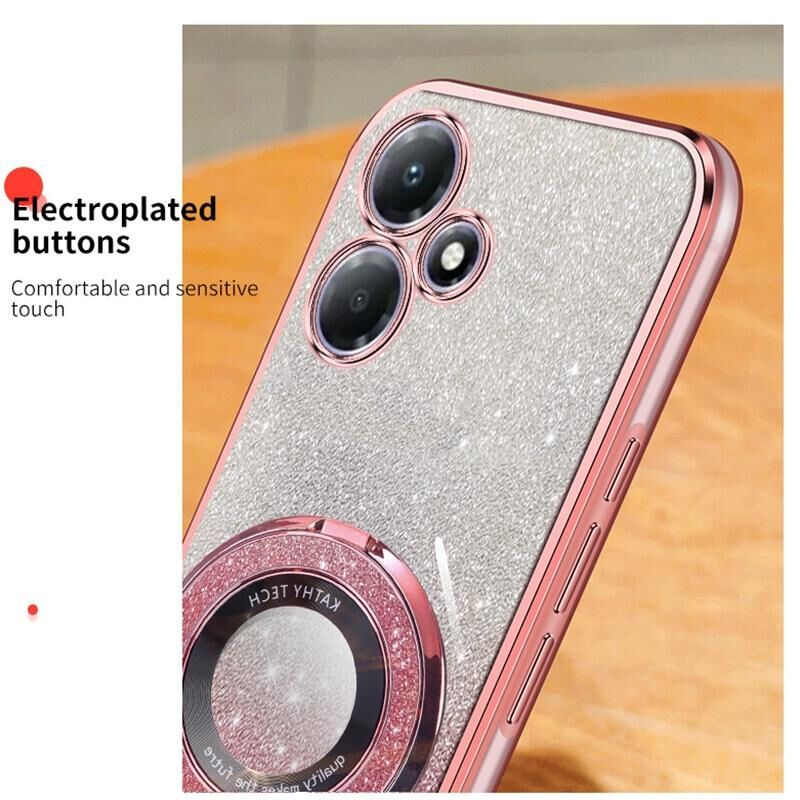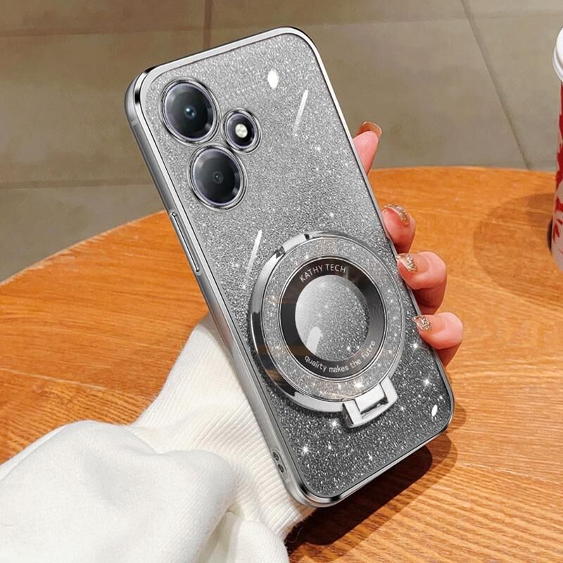 Για Infinix Hot 30 Play επιμεταλλωμένο διαβάθμιση Glitter στρογγυλό κάτοχος TPU τηλέφωνο υπόθεση (ασημί)