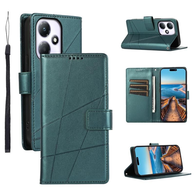 For Infinix Hot 30 Play PU Genuine Leather Texture Embossed Line Phone Case(Green)