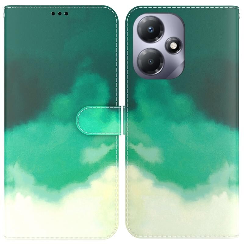 Για το Infinix Hot 30 Play Υδατογραφία μοτίβο Flip δερμάτινη θήκη τηλεφώνου (κυανό πράσινο)