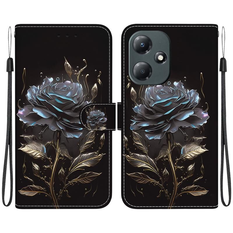For Infinix Hot 30 Play X6835 Crystal Texture Colored Drawing Leather Phone Case(Black Rose)