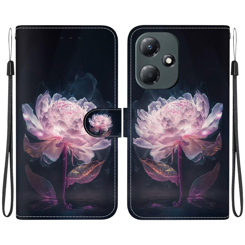 For Infinix Hot 30 Play X6835 Crystal Texture Colored Drawing Leather Phone Case(Purple Peony)