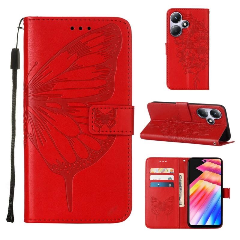 Θήκη τηλεφώνου από δέρμα με ανάγλυφο σχέδιο πεταλούδας για Infinix Hot 30 Play / X6835 (Μαύρο)