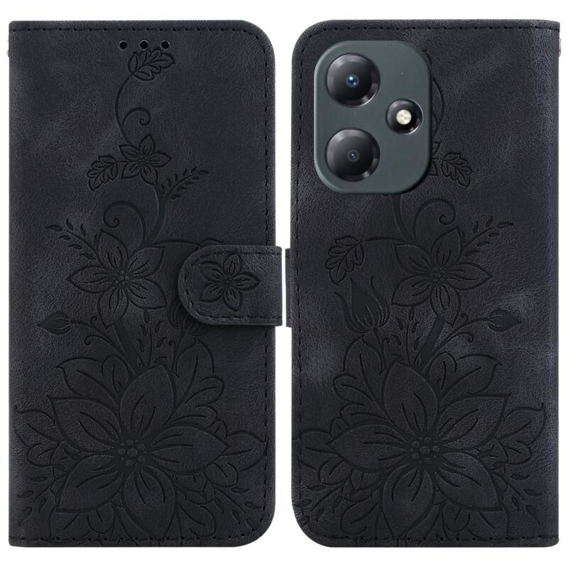 For Infinix Hot 30 Play / X6835 Lily Embossed Leather Phone Case(Black)