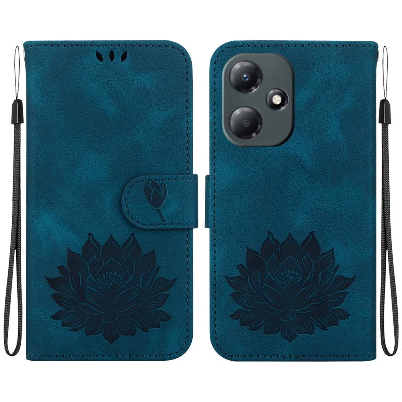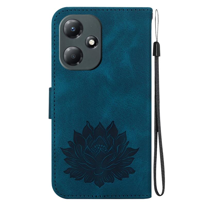 For Infinix Hot 30 Play X6835 Lotus Embossed Leather Phone Case(Dark Blue)