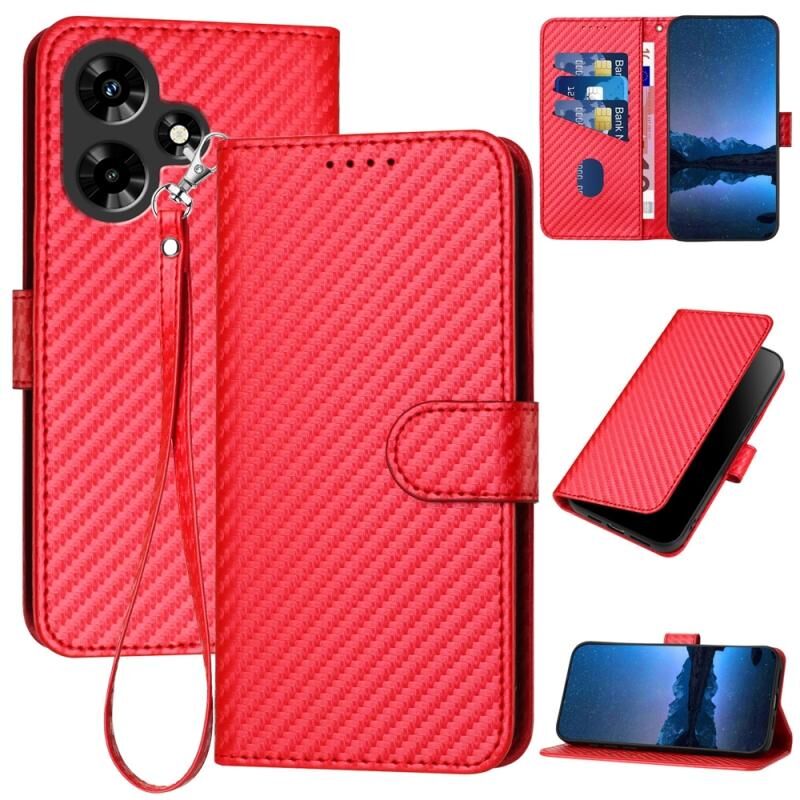 Για Infinix Hot 30 YX0070 Carbon Fiber πόρπη δερμάτινη θήκη τηλεφώνου με κορδόνι (κόκκινο)