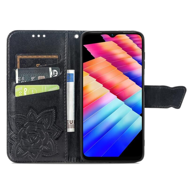 Θήκη τηλεφώνου από δέρμα με ανάγλυφο σχέδιο πεταλούδας και λουλουδιών για Infinix Hot 30i (Ροζ)