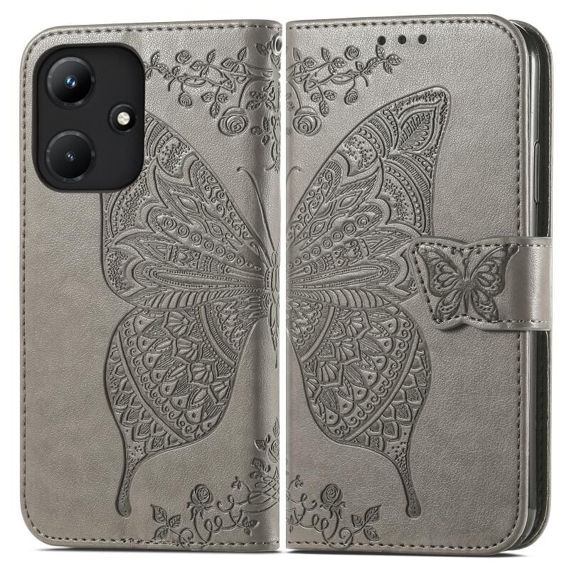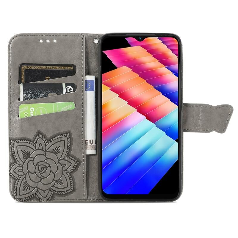 Θήκη τηλεφώνου από δέρμα με ανάγλυφο σχέδιο πεταλούδας και λουλουδιών για Infinix Hot 30i (Ροζ)