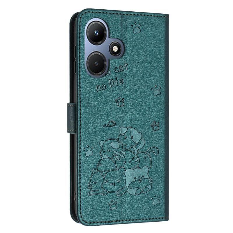 Θήκη δερμάτινη για Infinix Hot 30i με ανάγλυφο σχέδιο γατάκι και κορδόνι (Μωβ)