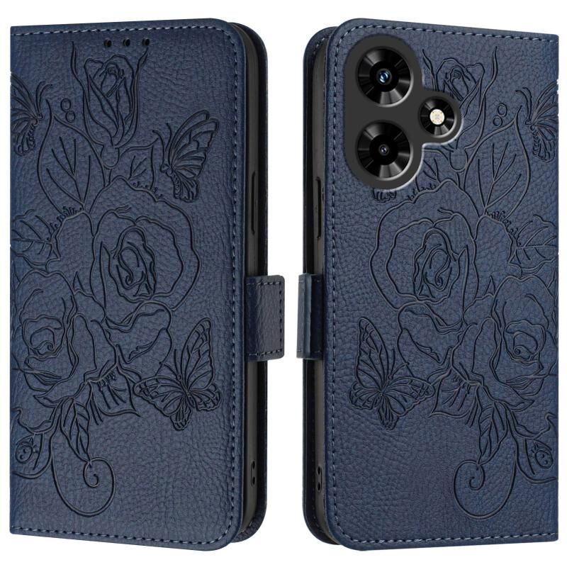 Για Infinix Hot 30i ανάγλυφο Rose RFID Anti-theft δερμάτινη θήκη τηλεφώνου (σκούρο μπλε)